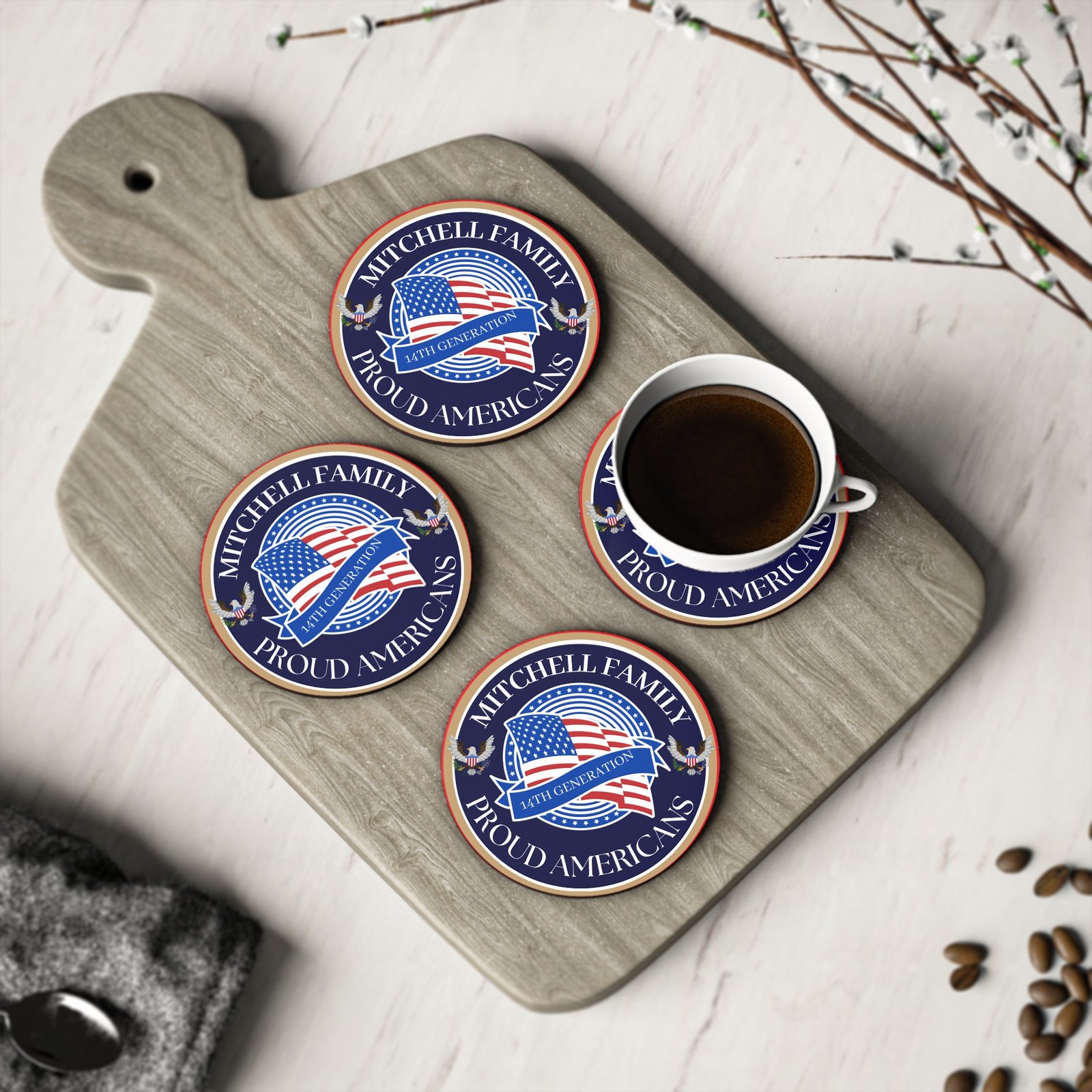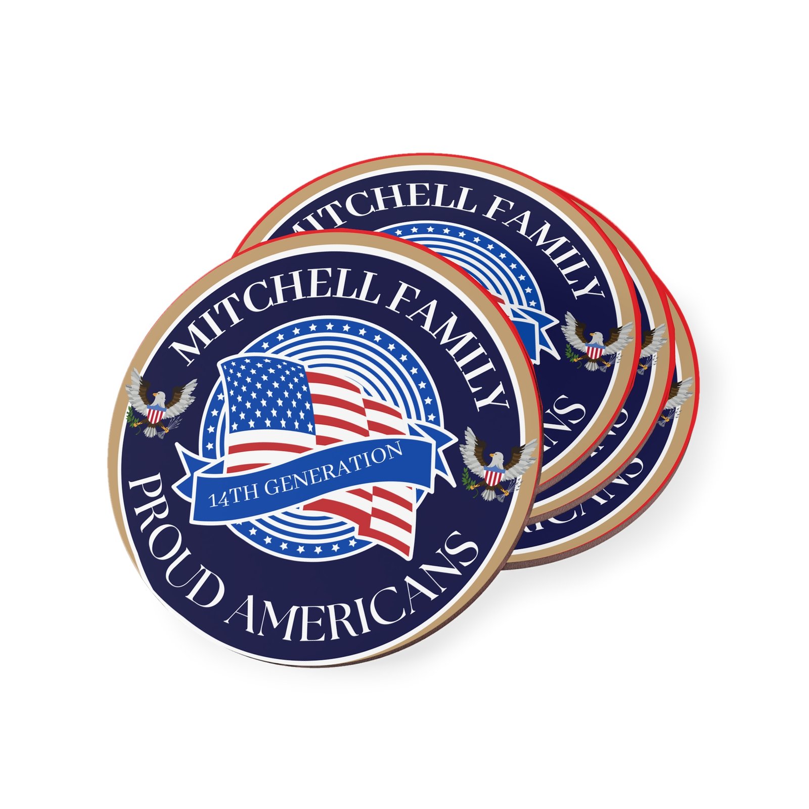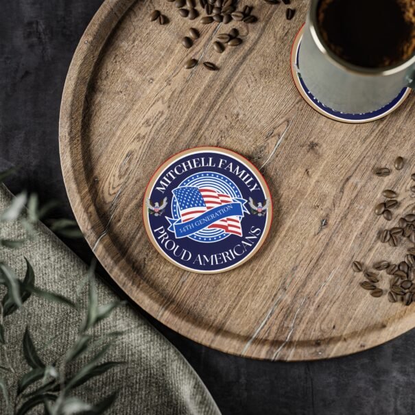 MITCHELL Personalized Proud Americans Coasters – Family Heritage Drinkware