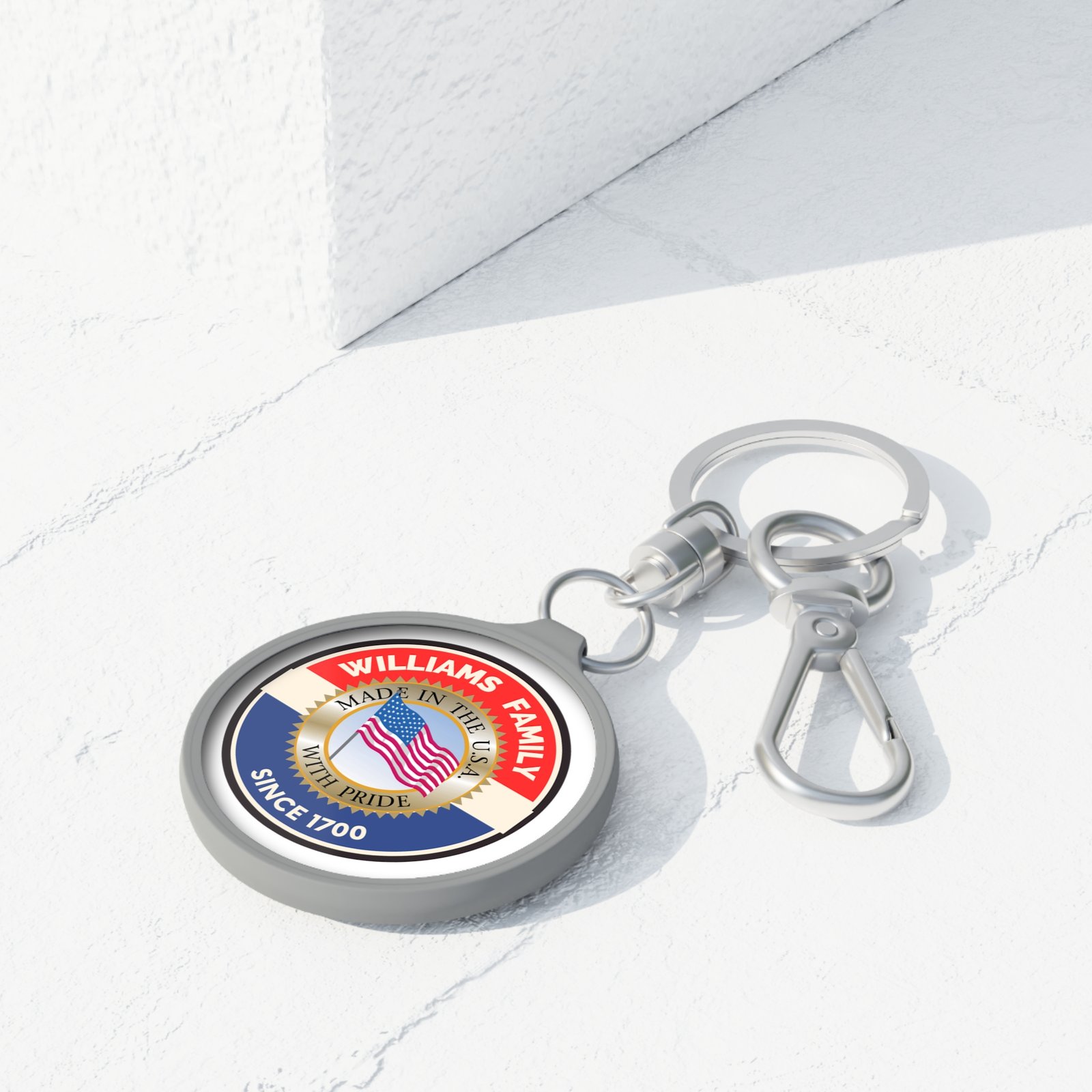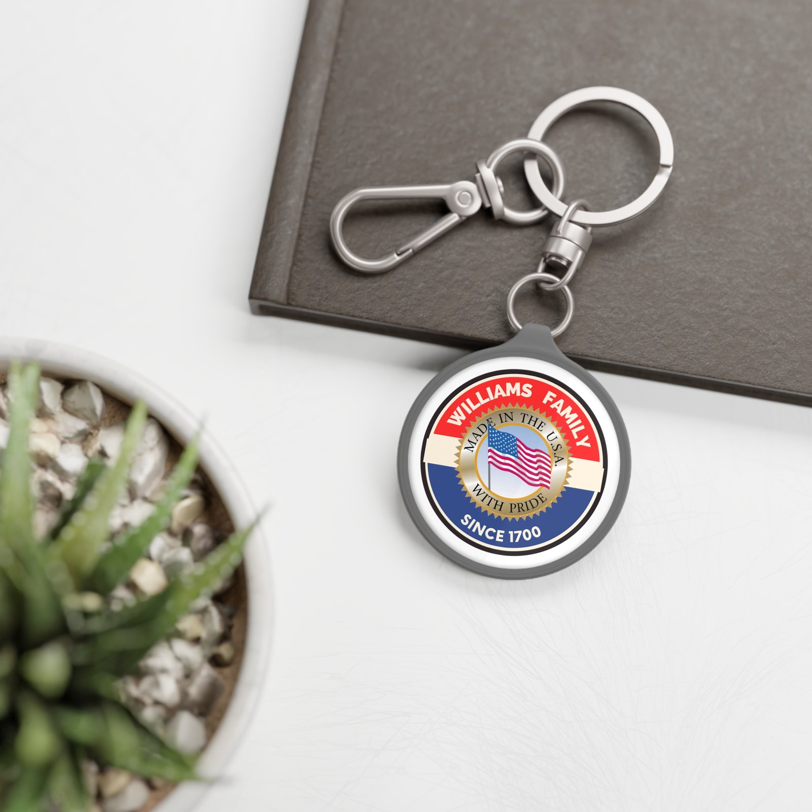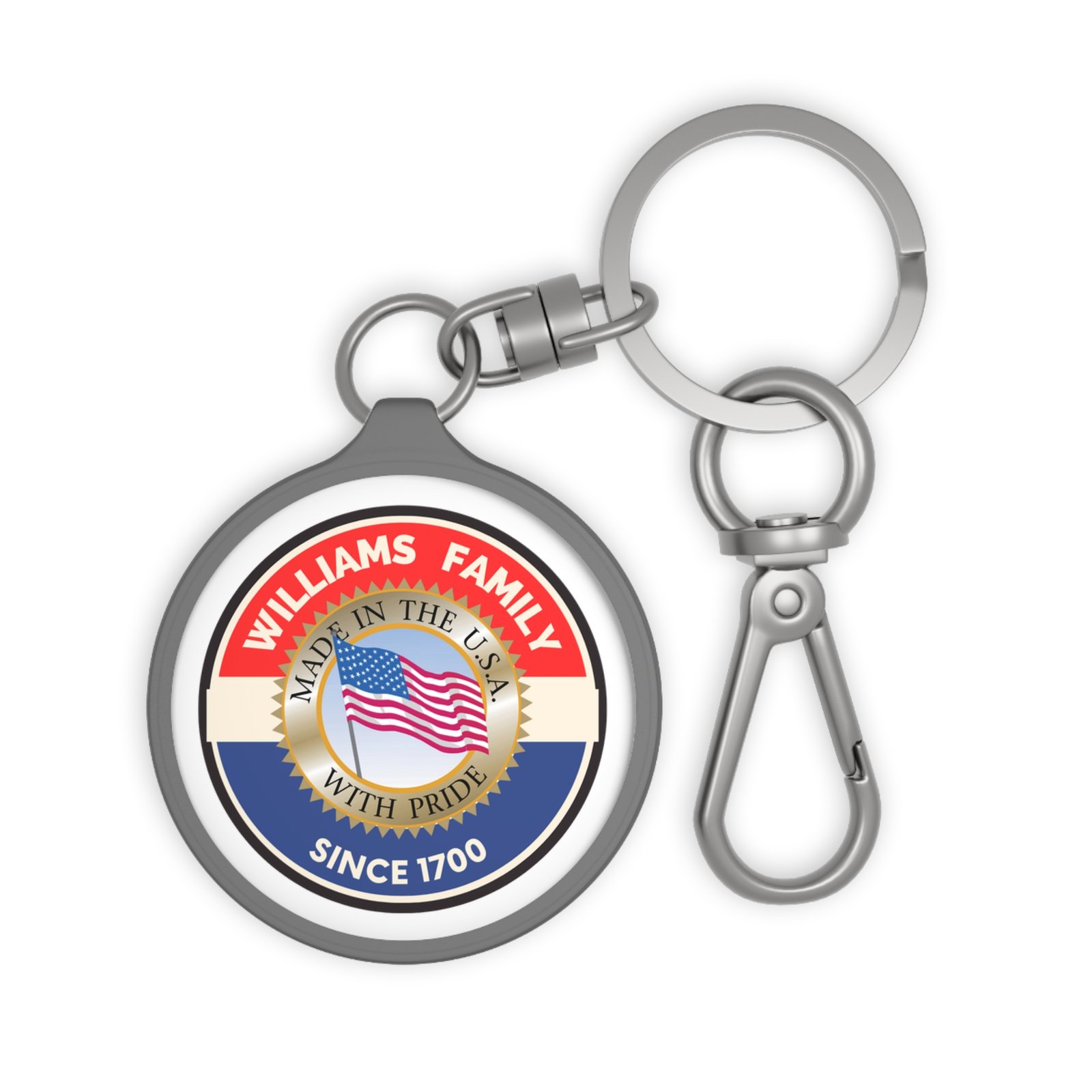 William Family Personalized Keyring Tag – Custom Family Name Keychain with USA Flag Design